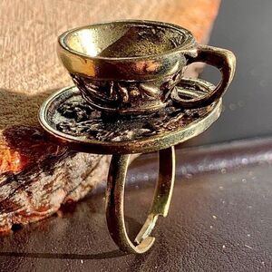 Unique Rustic Vintage Style Tea Time Coffee Cottagecore Spoon 3D Adjustable Ring