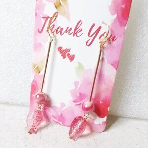 Pink + red pressed glass fishies + color dipped glass beads on a gold plated bar + simple gold plated Earwires.