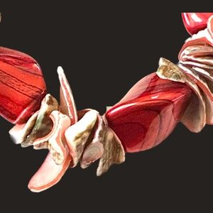 Multicolor Shells and Crimson & Black Tone Ceramic Stretch Bracelet