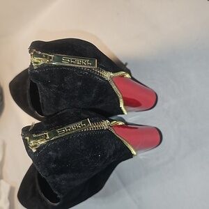 Gently Worn Black Suede Red Patent Leather Gold back Zippers Size 8.5