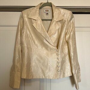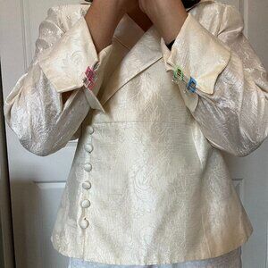 This silk/cotton blend top is perfect for a bridal occasion. Pair with a satin skirt for the ultimate thrifted wedding 'fit!!