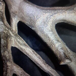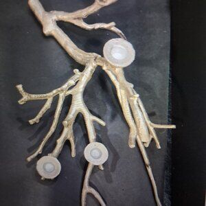 A very organic silver tone 4 candle or Votive Cup tree branches tabletop display piece, put these in the center of your dining room table and get lots of compliments. Would be awesome on a coffee table too. It measures 23 inches long, 12 inches wide, 7 inches high. In wonderful pre owned condition. A very sturdy piece made of aluminum. Non smoking pet free home.