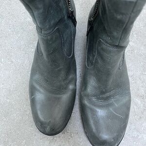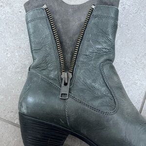 These are super comfy, cool, and the uniquely designed with a zipper on each side. Please see photos for a couple o scratches...although I think they aren't that noticeable while wearing them and add to the distressed look.