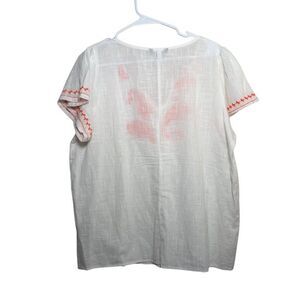 Unique Spectrum Blouse Women's Large V-Neck Embroidered Short Sleeve Tie Top