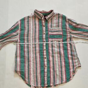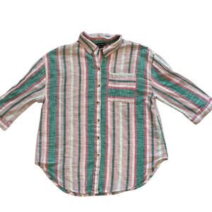 Unique Spectrum Cotton Pastel Striped 3/4 Sleeve Button Down Shirt, Size Small