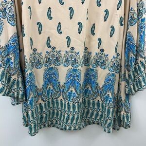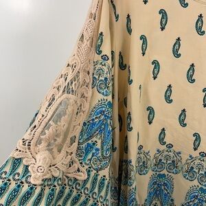 Unique Spectrum Paisley Print Top, has Lace Cut Out Sleeve Detail.