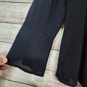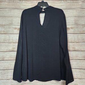 Unique Spectrum V-Neck Black Embroidered Tunic Choke Collar Women's Size XL