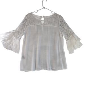 Unique Spectrum White Ruffle Sleeve Polka Dot Blouse Size L