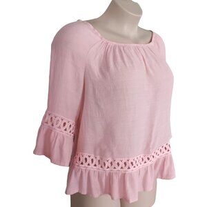 Unique Spectrum Womens Pink XL Peasant Top Crochet Details 3/4 Sleeves