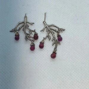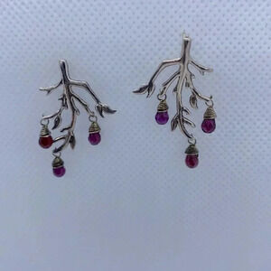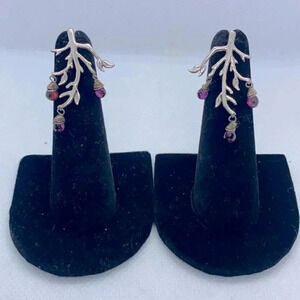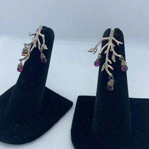 Sterling Silver 925 tree branches with purple and red dangling stones