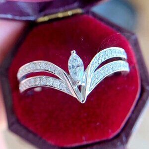 🎁 Unique Style Silver Plated V Shaped Crown Ring for Women, HA4606-6