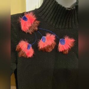 Nice, unique sweater with rabbit fur decoration. Cotton and cashemire. 3/4 sleeves