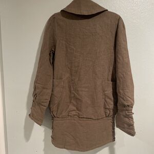 Unique Tan Linen Jacket Coat Asymetric Frog Closure Lagenlook Vintage M/L
