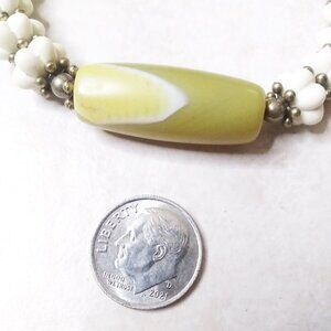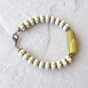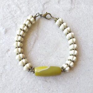 Unique Thick Chunky! One-of-a-kind Bracelet w. Green Agate + Cream Pumpkin Beads