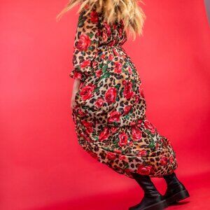 Unique Tiger & Roses Print Maxi Dress - Size S & Tall