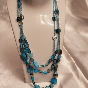 Unique Triple Strand ~ Stone and Bead Necklace ~ Excellent Condition