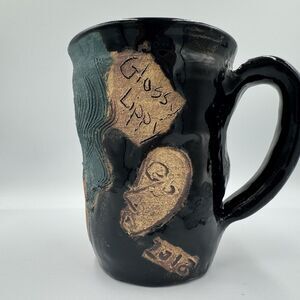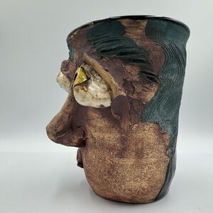 Unique Ugly Face Handmade 3D Pottery Coffee Mug Glossy Lippy Bulging Eyes
