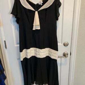 Unique Vintage 1920s Flapper Dress Black and Cream Sz XL #44