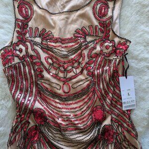 Major Gatsby/flapper vibes. Love the modern pink color, sequins and fringe. Size L/10-12. Never worn, NWT.