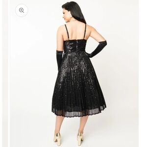 Unique Vintage 1950s Black Pleated Sequin Swing Dress Large