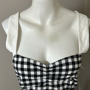 Unique Vintage 1950s White and Black Gingham Swing Dress Retro Sz S NEW