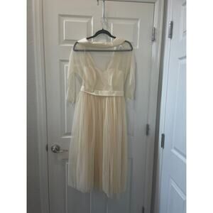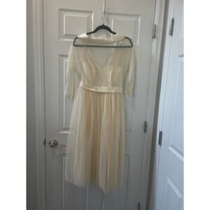 Unique Vintage 1950sChiffon Boat Neck Wedding Swing Dress Ivory SZ #