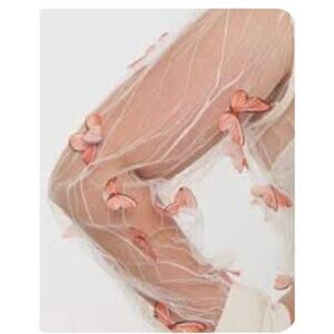 Unique Vintage 3D Butterfly Blouse Long Sleeve Lace with Bow Collar Sz XS #34