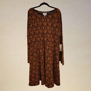 orange black dress, unique vintage plus size, 5X flare dress, circle skirt dress, bell sleeve dress, gothic retro dress, Halloween party outfit, vintage-inspired fashion, stretchy knit dress, statement sleeve dress, bold print dress, dark academia style, alt fashion, playful fit and flare, fall festival dress, comfy pullover dress, size inclusive vintage, large size dress, boho witchcore, horror fashion, feminine retro, dramatic sleeve dress