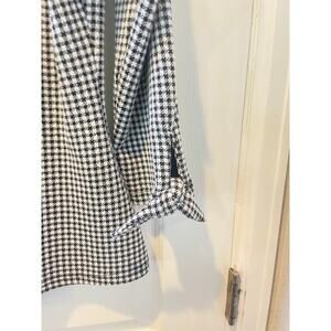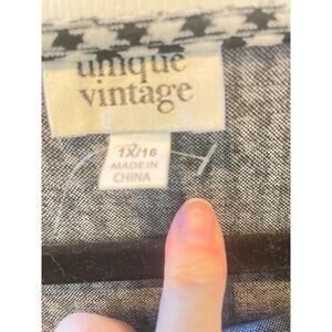 The Unique Vintage Wm Houndstooth Knit Retro Vintage Style Long Sleeve Top in size 1X is a stylish and versatile piece perfect for various occasions such as travel, parties, casual outings, and business meetings. This top features a boat neck, button closure, and covered buttons with a bow tie accent at the neckline. Made from lace fabric, it offers a stretchy and comfortable fit for all seasons, with a vintage-inspired theme that adds a touch of nostalgia. The long sleeves with 3/4 length and bows at the sleeves further enhance the retro vibe of this chic top from the brand Unique Vintage.
