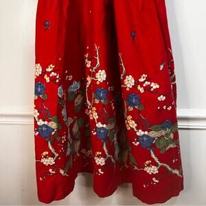 Unique Vintage 70’s Red Floral Midi Sun Dress, Large,