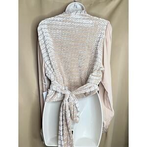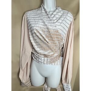 Unique Vintage Beige Stripe Velvet Wrap Top 4X NWT
