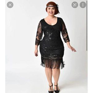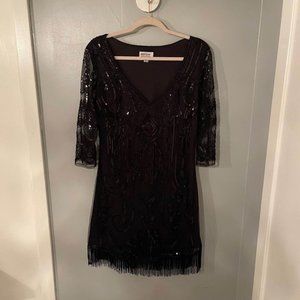 Unique Vintage Black Beaded Sequin Cocktail Flapper Dress size 10-12