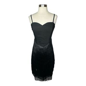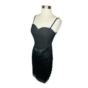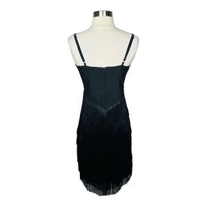 Unique Vintage Black Chevron Fringe Pencil Dress - Size Medium
