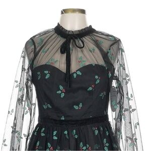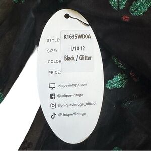 Unique Vintage Black Mistletoe Glitter Mesh Holiday Party Dress L 10-12 NWT