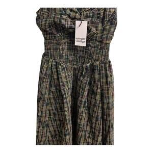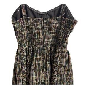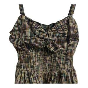 Unique Vintage Black Rainbow Plaid Smocked Swing 50s Dress Sz S #70