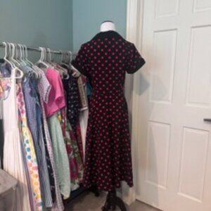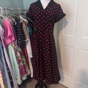 Unique Vintage Black & Red Polka Dot Alexis Shirtdress