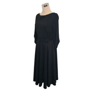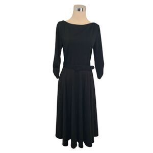 Unique Vintage Black V-Back 1950's Inspired Swing Belted Dress Size M