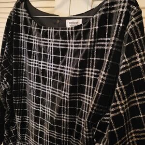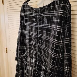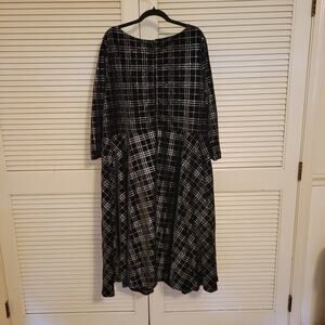 Unique Vintage Black Velvet Plaid Fit and Flare 3/4 Sleeve Dress Plus Size 5X
