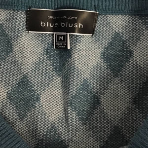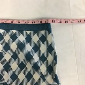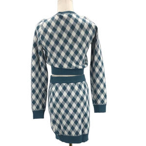 Chic argyle blueish-green and white argyle crop top and sweater skirt. In excellent condition.
