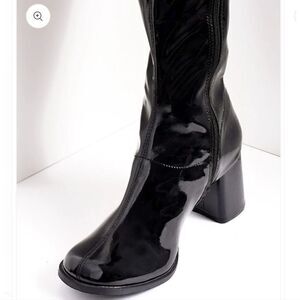 Unique Vintage Boots Women's Black Patent Leatherette Gogo Dancer Mod 70s Hippie Halloween Costume