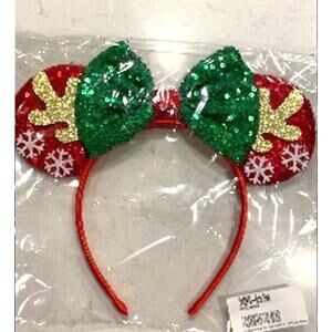Unique Vintage Christmas Sequins Minnie Mouse Ears Reindeer Headband New!