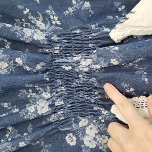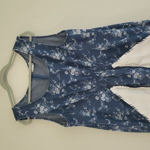 Unique Vintage Coldwater Creek Midi Floral Denim Jumper Dress 18W Blue White
