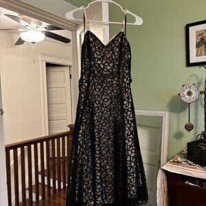 Unique Vintage Cream & Black Lace Cocktail Dress