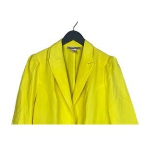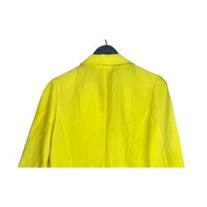 Unique Vintage Crop Single Button Lightweight 3/4 Sleeve Collar Blazer Faux Pockets 16 W Neon Yellow