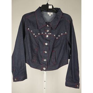 Unique Vintage Dark Denim rhinestone Western Boxy Crop Jacket XL