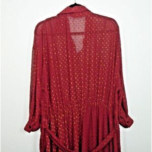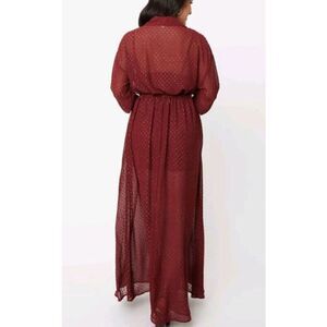 Unique Vintage Dress Size 3X/20 Burgundy Gold Clip Dot Blanche Maxi Shirt Belted
