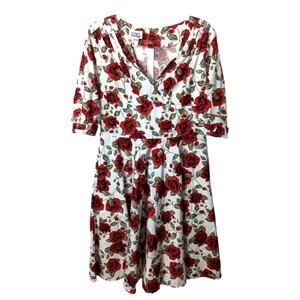 Unique Vintage Fit & Flare Midi Dress Floral Print Retro Pinup NWT Size XL 14