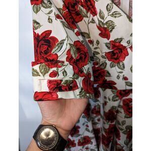 White background with red rose print