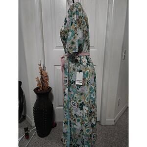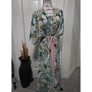 Unique Vintage Floral Kimono Style Wrap Dress Size M NWT