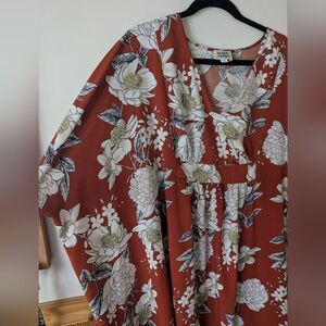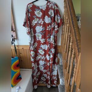 Unique Vintage Floral Rust Orange 70s Flowy Kaftan Bohemian One Size